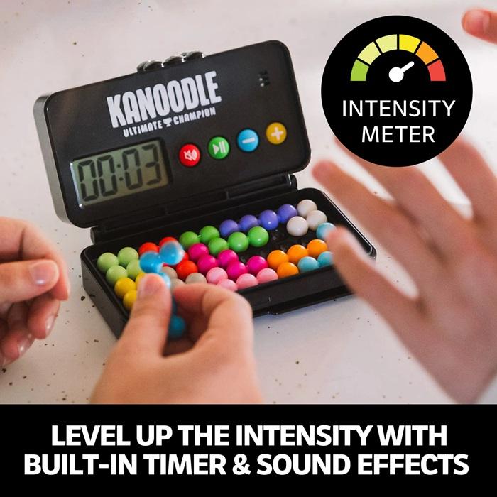 12 Kanoodle pieces, battery-powered timer, and guide with 500 new 2D and 3D puzzles, plus the bonus #KanoodleChallenge. Ages 7+, Requires 2 AAA batteries (not included)