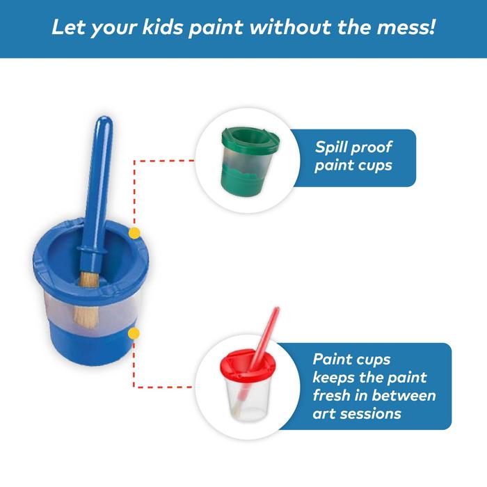 KIDS PAINT CUPS – Tempat Kuas Anti Tumpah isi 4 1 Paket berisi: 4 Paint Cups untuk menaruh kuas ketika melukis: Red, Green, Blue, Yellow Cocok untuk di rumah dan di sekolah. – Tempat kuas anti tumpah – Mudah dibersihkan – Tutup mudah dibuka – Bahan plastik berkualitas