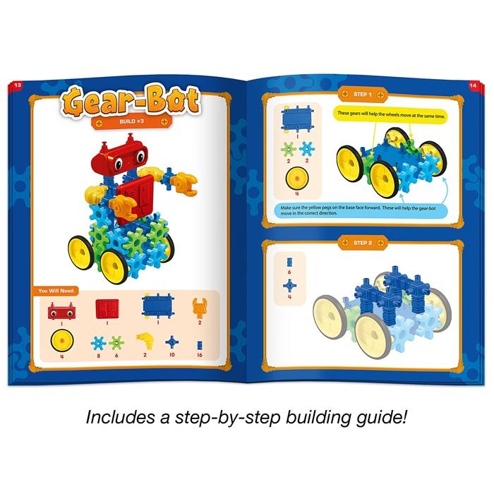 Watch the gears spin into action as kids explore engineering, mechanics, and cause-and-effect, all while building confidence and creativity. The included full-color guide provides step-by-step instructions to jump-start the building process.
