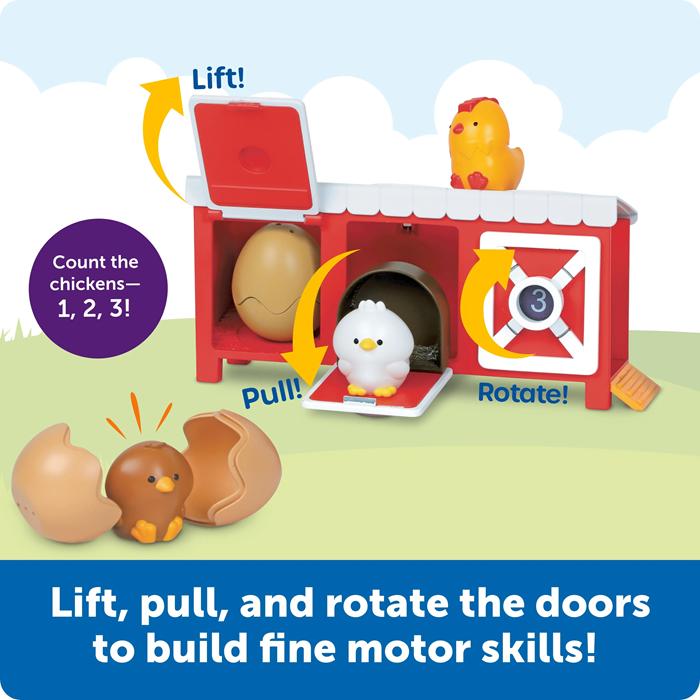 Little ones will hatch new skills with every play session using the Peeksville Hide & Cheep Chicken Coop!