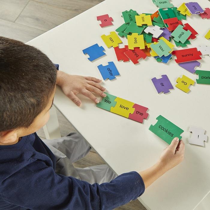 Building Language Skills: Kids build new language skills one piece at a time with this kindergarten learning toy’s 100 double-sided sentence puzzle cards! Add Your Own Words: Want to expand the sentence-building fun? This educational toy’s 6 write-and-wipe pieces let kids add their names and other favorite words! Includes Reusable Storage: With a sturdy design and easy-to-carry handle, these learning puzzles’ package doubles as a reusable storage box!